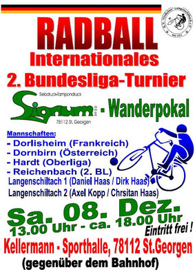 Erst nach Entscheidungsspiel stand der Sieger des internationalen 2. Bundesliga Radballturnier um den SIGNUM-Wanderpokal fest. Mit 5:4 Toren hatte am Ende das Team aus Reichenbach/Fils die Nase gegenüber dem österreichischen Vertreter aus Dornbirn die Nase vorn.